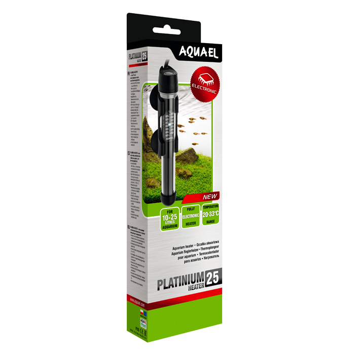 PLATINIUM HEATER – классический, стеклянный, полностью электронный нагреватель, с помощью которого легко создать оптимальные условия для содержания аквариумных обитателей. Встроенный электронный термостат позволяет регулировать температуру воды в аквариуме в диапазоне от 20 до 33 °C, обеспечивая высокую точность измерения ± 0.4 °C.