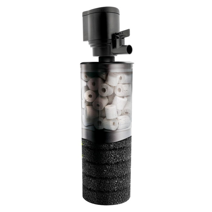 Внутренний фильтр AQUAEL TURBO FILTER 500 для аквариума до 150 л (500 л/ч, 4.4 Вт, h = 70 см). Внутренние фильтры TURBO FILTER предназначены для очистки и аэрации воды в аквариумах. Высокая эффективность двухуровневой фильтрации (механической и биологической) обеспечивает чистоту и кристальную прозрачность воды. Фильтры серии TURBO подойдут: для начинающих аквариумистов (качественная фильтрация; керамический наполнитель для биологической фильтрации в комплекте); для заводчиков (крупная открытая губка защитит мальков от попадания в фильтр; двухуровневая система фильтрации обеспечит биологический баланс). В базовую комплектацию входят крупнопористая открытая губка и контейнер с керамическим наполнителем. Губка предназначена для удаления из воды крупных и мелких частиц грязи. Контейнер для сыпучих наполнителей заполнен керамическим наполнителем в форме колец BIOCERAMAX 600, на которых со временем селятся колонии полезных нитрифицирующих бактерий, перерабатывающих токсичные для рыб вещества. Отличительная особенность TURBO FILTER состоит в возможности увеличения фильтрационного материала за счет присоединения дополнительных контейнеров с наполнителями. В комплекте есть аэрационная насадка, благодаря чему фильтр может насыщать воду кислородом. Наличие регулятора позволяет изменять мощность потока воды, выходящей из фильтра. Направление выхода воды можно регулировать в диапазоне 120°.