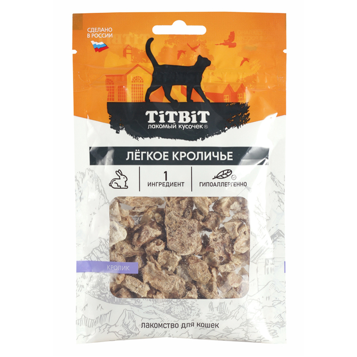 Легкое Кроличье - лакомство для кошек сушеное, 10г, TITBIT
