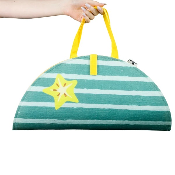 Коврик-сумка выполнен в практичном виде с удобными ручками.