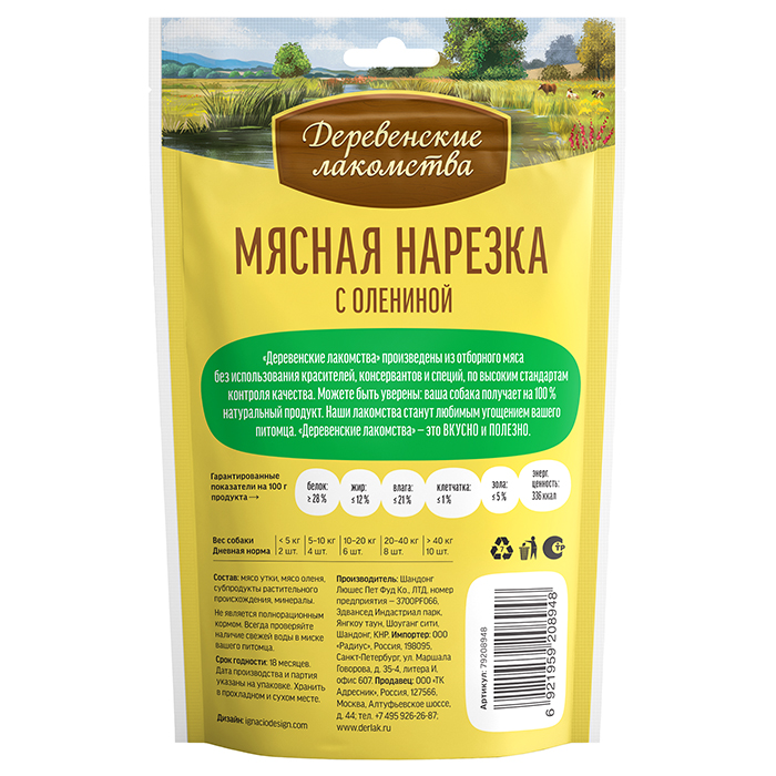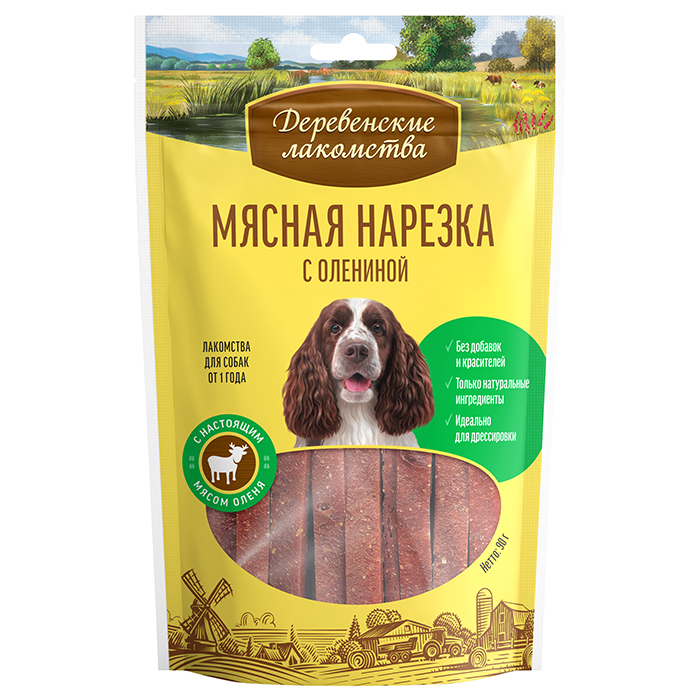 Деревенские лакомства для собак, мясная нарезка с олениной, 90г