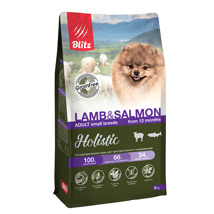 Блиц ХОЛИСТИК сухой корм для собак мелких пород, беззерновой, с ягненком и лососем, 8кг, BLITZ Holistic Small Breeds Lamb & Salmon