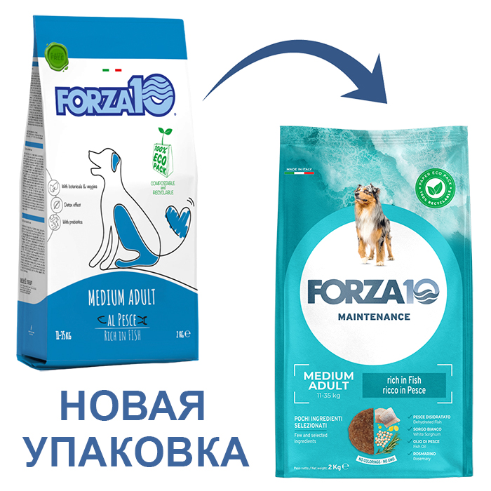 Форца10 МЕЙНТЕНАНС МЕДИУМ ЭДАЛТ сухой корм для собак средних пород с рыбой, 2кг, Forza10 Maintenance Medium Adult