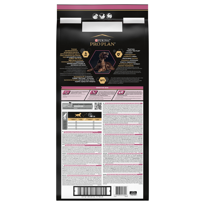 Сухой корм PRO PLAN® SENSITIVE SKIN для взрослых собак крупных пород с атлетическим телосложением с чувствительной кожей, с высоким содержанием лосося, 14кг. Кожа является мощным природным барьером, который препятствует проникновению опасных микроорганизмов и химических веществ в организм собаки. Если защитные свойства нарушены, у питомца может появиться кожное воспаление или зуд, выпадение шерсти и другие негативные последствия. Поэтому собакам, склонным к кожным реакциям, необходим специальный сбалансированный корм для поддержания здоровья кожи и шерсти. Изучая потребности собак на протяжении многих лет, команда квалифицированных ветеринарных специалистов и диетологов PURINA разработала сухой корм PRO PLAN® Sensitive skin (для чувствительной кожи) — ежедневный рацион с высоким содержанием лосося для взрослых собак крупных пород с атлетическим телосложением. Этот полнорационный корм сбалансирован по составу и помогает поддерживать здоровье чувствительной кожи. ПРЕИМУЩЕСТВА: ✔ Научно разработан для поддержания здоровой кожи и шерсти ✔ Без добавления пшеницы. Содержит специально отобранные источники белка для собак с чувствительной кожей (Производится на линии, на которой также производятся корма, содержащие зерновые) ✔ Специальная рецептура для собак с атлетическим телосложением помогает поддерживать здоровье суставов вашей собаки при активном образе жизни. Рационы PRO PLAN® разработаны на основе современных научных достижений и рекомендованы ветеринарными специалистами. Ингредиенты № 1 в рационах PRO PLAN® для собак — это всегда высококачественные кусочки ягненка, лосося, курицы и говядины, замороженные и приготовленные таким образом, чтобы сохранить вкус и важнейшие питательные вещества. Корм сухой для взрослых собак крупных пород с атлетическим телосложением PRO PLAN® Sensitive skin (для чувствительной кожи) — это полюбившийся PRO PLAN® Opti Derma (Опти Дерма) с новым названием, но с прежним составом и качеством.