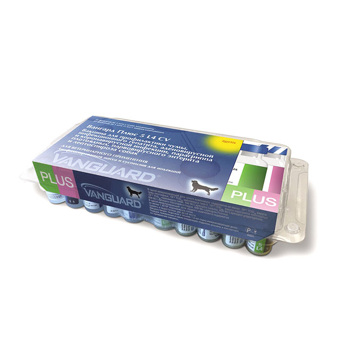 Вакцина ВАНГАРД ПЛЮС 5 L4 CV для профилактики чумы, инфекционного гепатита, аденовирусной и коронавирусной инфекции, парагриппа плотоядных, парвовирусного энтерита и лептоспироза собак.