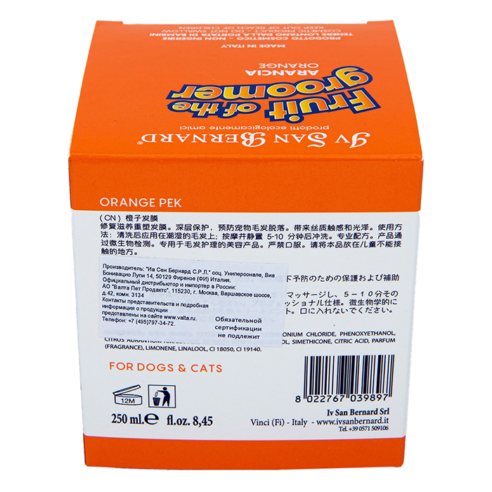Ив Сен Бернар ФРУТ АПЕЛЬСИН маска для слабой, выпадающей шерсти с силиконом, 250мл, IV SAN BERNARD Orange Mask