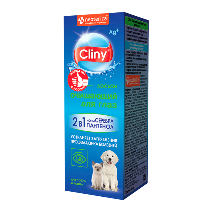 Для ухода за глазами питомца и предотвращения проблем используйте лосьон для глаз Cliny с ионами серебра. Ионы серебра обладают мощным бактерицидным действием широкого спектра, не вызывают аллергии. Cliny — и гигиена, и профилактика болезней.