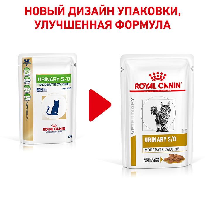 Роял Канин УРИНАРИ МОДЕРЕЙТ КЭЛОРИ лечебный влажный корм для кошек, кусочки в соусе, 85г, ROYAL CANIN Urinary S/O Moderate Calorie