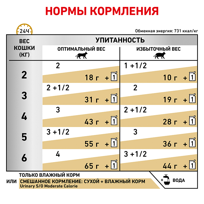Полезная информация: влажная диета Urinary S/O Feline особенно показана в случаях идиопатического цистита. Диетический корм Urinary S/O Feline, который позволяет предупреждать образование не только струвитных, но и оксалатных камней, рекомендован также при обнаружении мочевых камней неизвестной природы. Диету назначают для долгосрочного применения. Важно помнить, что необходимо постоянно использовать исключительно этот рацион, так как другой продукт может спровоцировать у кошки рецидив уролитиаза.