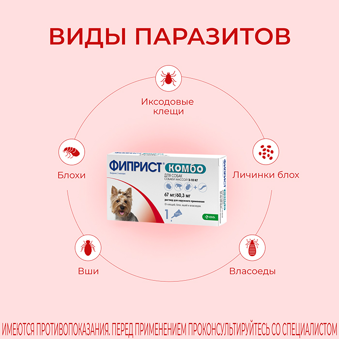 ФИПРИСТ КОМБО препарат от клещей, блох, вшей, власоедов для собак весом 2-10кг, 1 пипетка, КRКА Fiprist Combo