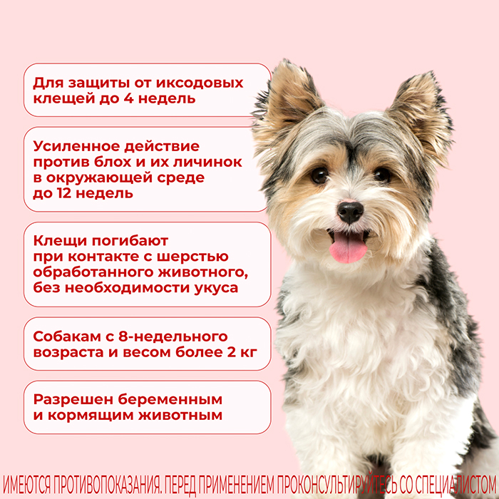• Разрешается применять щенкам с 8-недельного возраста и весом от 2 кг, а также беременным и кормящим животным. Удобство применения: