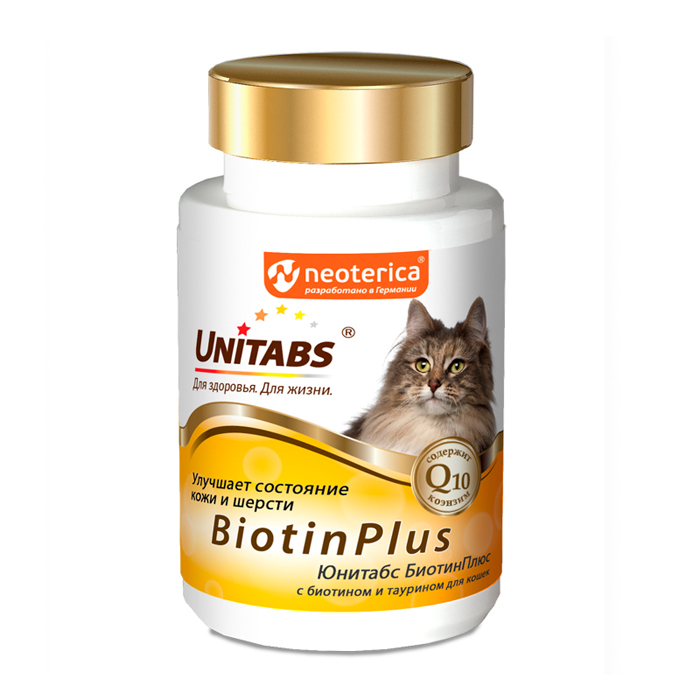 Юнитабс БИОТИН ПЛЮС витамины для кошек с биотином и таурином, 120таб, UNITABS BiotinPlus