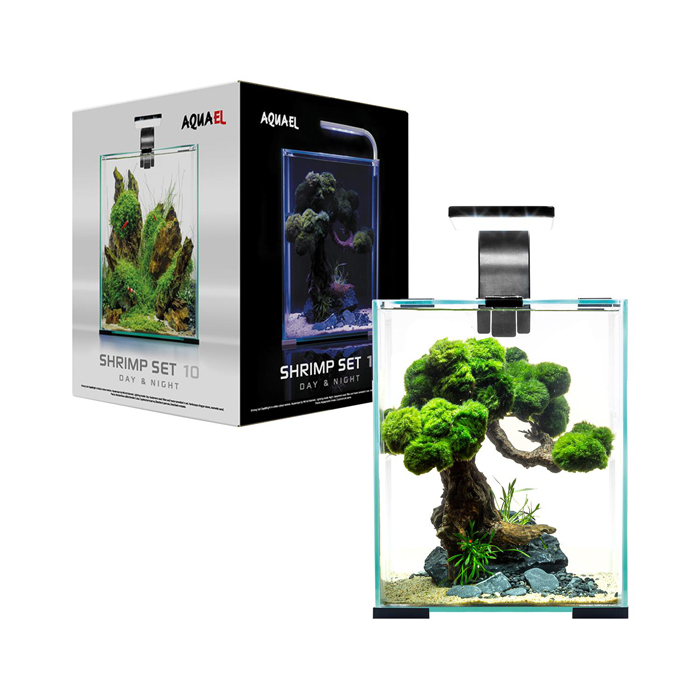 АкваЭль ШРИМП СЕТ ДЕНЬ/НОЧЬ 10 аквариум с комплектацией, черный, 10л, 20,3х20,3х32,5см, AQUAEL Shrimp Set Day & Night