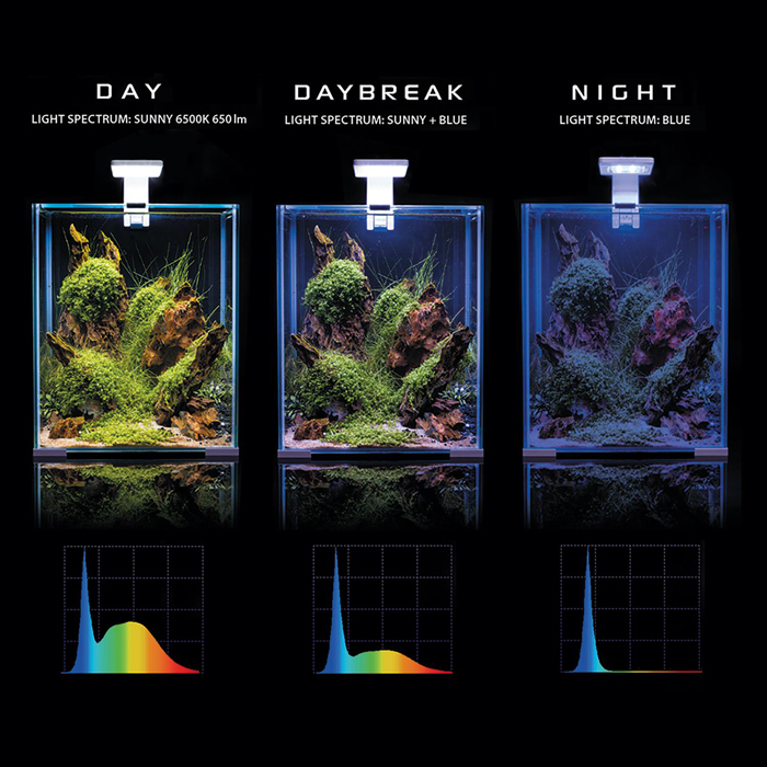 Комплектация: 1. Светодиодный светильник LEDDY SMART DAY & NIGHT 4.8 Вт черный (6500 K, 650 лм). 2. Внутренний фильтр TURBO MINI (320 л/ч, 4.4 Вт). 3. Стеклянный нагреватель FIX 2 50 Вт (с установленной температурой 25 °C). 4. Покрывное стекло. 5. Комплект уголков для покрывного стекла и дна аквариума.