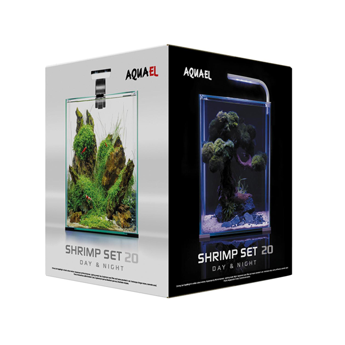 Aквариум AQUAEL SHRIMP SET DAY & NIGHT 20 черный (19 л). SHRIMP SET DAY & NIGHT – аквариумы небольшого размера, которым легко найти место в квартире или в офисе на рабочем столе. Аквариумные комплексы SHRIMP SET DAY & NIGHT выбирают: для оформления аквариумов с флуоресцирующими рыбами и декорациями (светятся в синем спектре); любители креветок (в комплекте фильтр с открытой губкой, который обеспечит безопасное содержание ракообразных); для детской комнаты (режим «ночь» может быть включен на время сна ребёнка, который боится засыпать в темноте); для содержания мелких стайных рыб (например, микрорасбор, тетра Аманды, гуппи Эндлера) или петушков; для оформления аквариумов со мхами (качественная фильтрация с AQUAEL TURBO MINI). В комплекте аквариума AQUAEL SHRIMP SET DAY & NIGHT есть всё необходимое для запуска аквариума: фильтр для очистки воды; нагреватель для поддержания температуры в аквариуме; светильник LEDDY SMART DAY & NIGHT с тремя режимами освещения («день» / «рассвет» / «ночь»); уголки, приподнимающие аквариум над поверхностью (нет необходимости в использовании подложки); покрывное стекло для уменьшения испарения воды. Характеристики: Тип: аквариумный набор. Форма аквариума: куб. Объём аквариума: 19 л. Габаритные размеры аквариума: 25.3 х 25.3 х 37.5 см (со светильником). Цвет: черный. Габаритные размеры аквариума (без светильника): 25 х 25 х 30 см. Материал аквариума и покрывного стекла: флоат – стекло. Толщина стекла аквариума и покрывного стекла: 4 мм. Цвет силиконовых швов аквариума: прозрачный. Мощность освещения светильника: LED 4.8 Вт (6500 K, 650 лм). Напряжение: 220 - 240 В / 50 Гц. Потребляемая суммарная мощность: 59.2 Вт. Гарантийный срок: 1 год на прочность и герметичность клеевых швов аквариума , 2 года на техническое оснащение.
