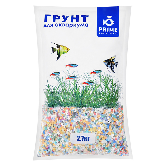 Грунт PRIME "Кварц Цветной", 3-5мм, 2,7кг. Грунт природный натуральный , окрашенный. Нейтральный. Безопасен для водных и наземных живых организмов. Готов к применению.