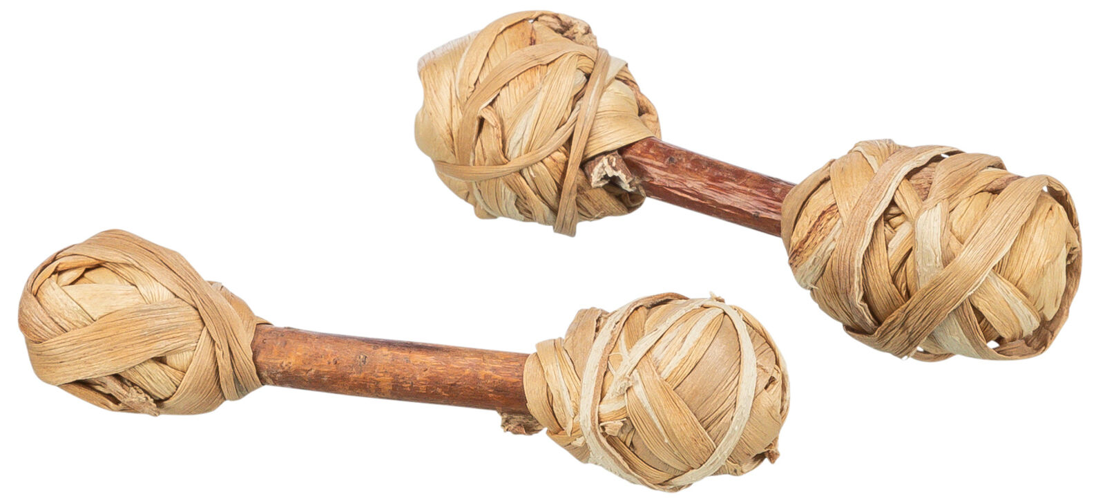 Игрушка для Грызунов НАБОР ГАНТЕЛЕЙ 2шт, 9х2см, кора дерева/трава, 61916, TRIXIE