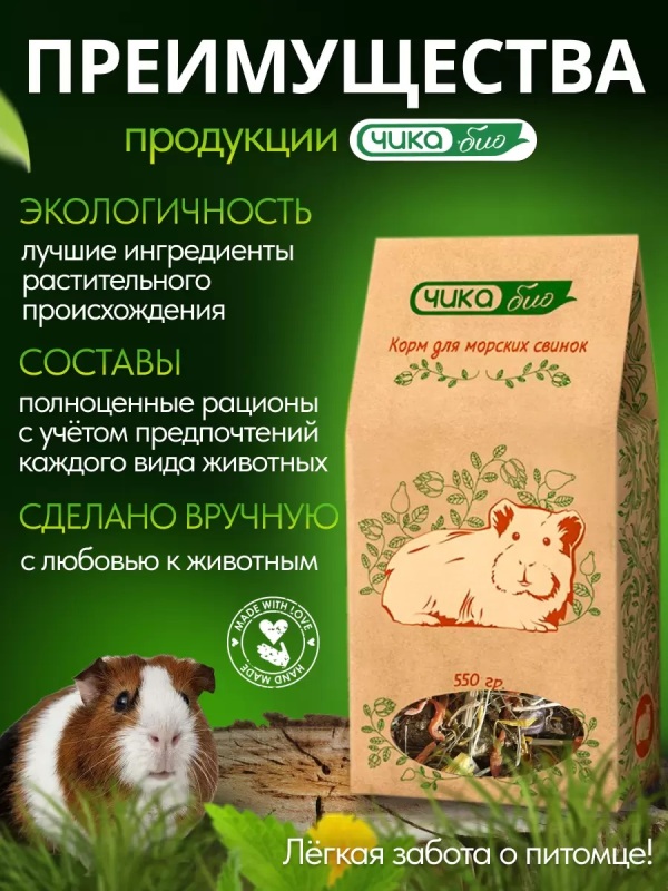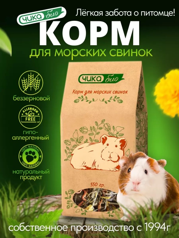 Корм для Морских Свинок, беззерновой, 550г, ЧИКА БИО