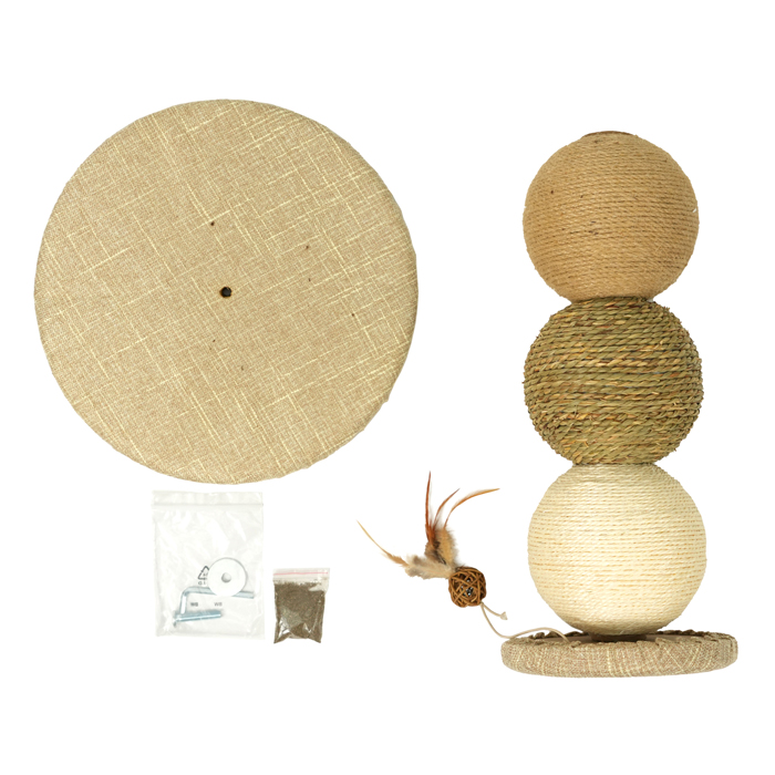 Материал: 40% ДСП, 30% полиэстер, 10% сизаль (веревка), 10% веревка из водорослей, 10% джутовая веревка, 3 г. кошачья мята.