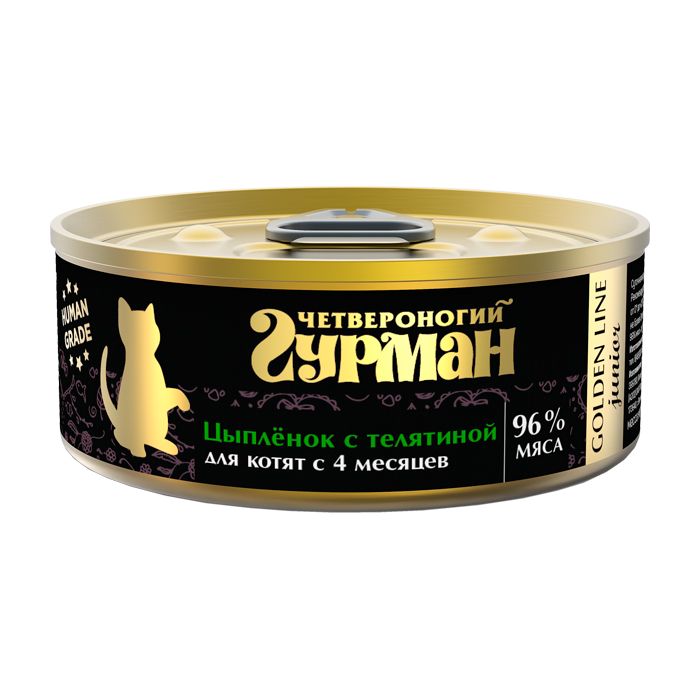 Четвероногий Гурман ГОЛДЕН ЛАЙН влажный корм для котят с цыпленком и телятиной, 100г, Golden Line