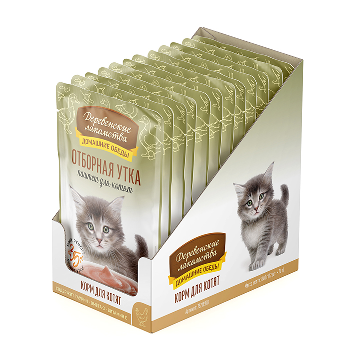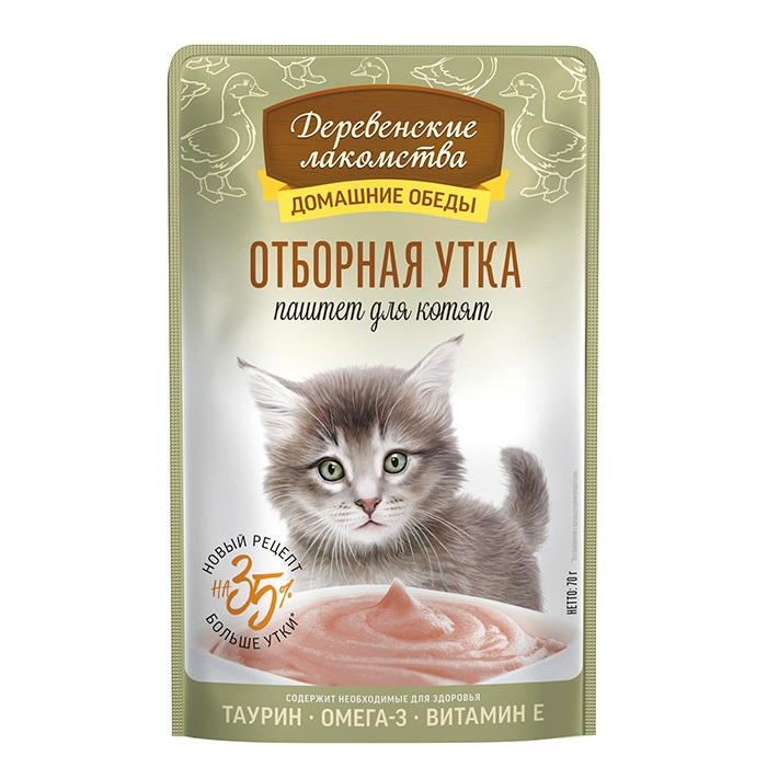 Деревенские Лакомства ДОМАШНИЕ ОБЕДЫ влажный корм для котят, паштет с отборным уткой, 70г
