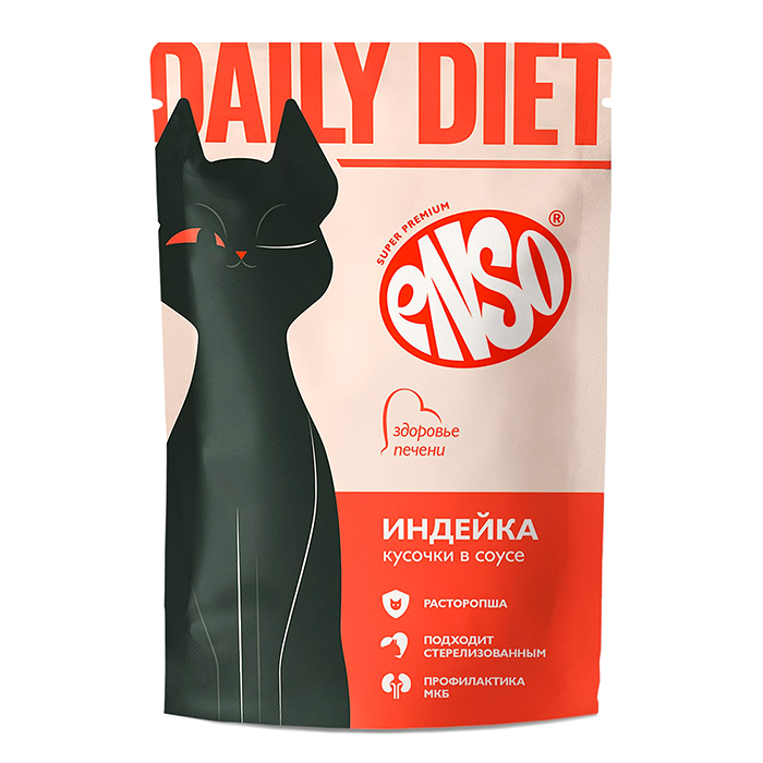 Энсо ДЕЙЛИ ДИЕТ влажный корм для кошек для здоровья печени, кусочки в соусе с индейкой, 85г, ENSO Daily Diet