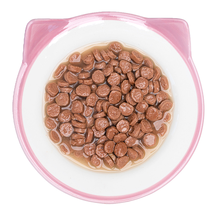 Cостав: мясо и мясные субпродукты не менее 36% (курица 12%), злаки, витамины и минеральные вещества. Энергетическая ценность (калорийность) на 100 г: 82 ккал/343 кДж. Питательная ценность на 100 г продукта (средние значения): белки 8%, жиры 4%, зола 1,6%, клетчатка 0,4%, влага 82%. Питательные добавки: витамин А 1500 МЕ/кг, витамин D3 100МЕ/кг, витамин Е 7 МЕ/кг, цинк 22 мг/кг, марганец 2 мг/кг, таурин 600 мг/кг.