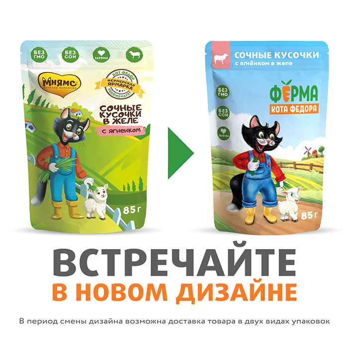 ФЕРМА КОТА ФЁДОРА влажный корм для кошек, сочные кусочки с ягненок в желе, 85г