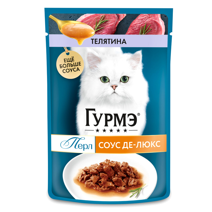Гурмэ ПЕРЛ влажный корм для кошек, соус де-люкс с телятиной, 75г