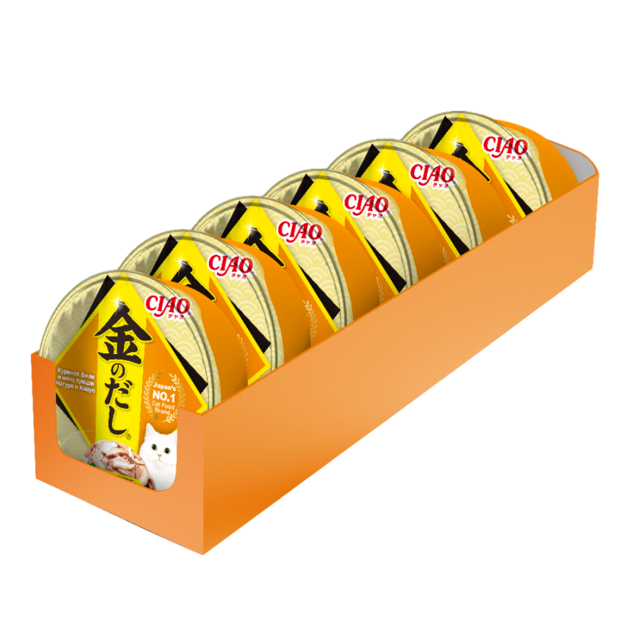 Инаба КИННОДАСИ КАП для кошек, куриное филе и микс тунцов магуро и кацуо, 70г, INABA