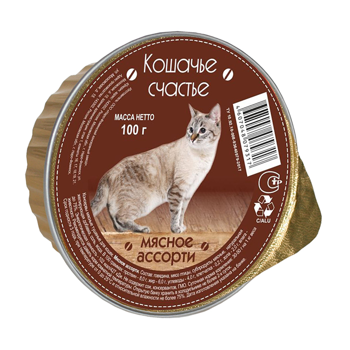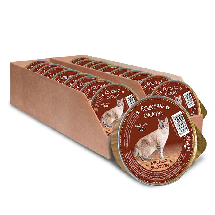 КОШАЧЬЕ СЧАСТЬЕ влажный корм для кошек, мясное ассорти, 100г
