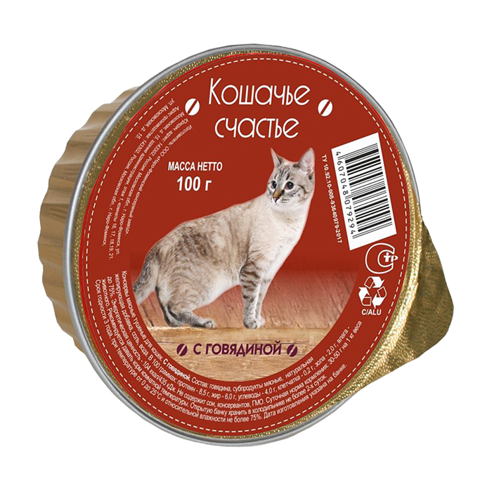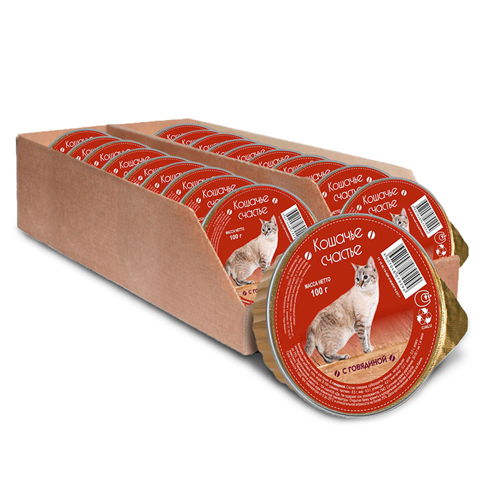 КОШАЧЬЕ СЧАСТЬЕ влажный корм для кошек с говядиной, 100г