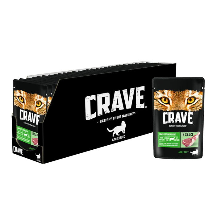 Крэйв влажный корм для кошек с ягненком в соусе, 70г, CRAVE Adult Cat Food