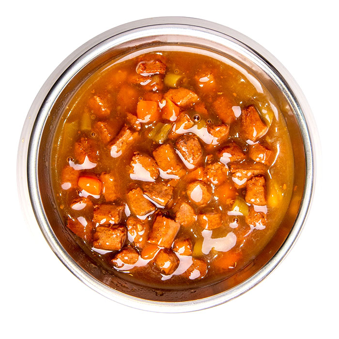 Состав: мясо буйвола (26%), мясо курицы, свиная печень, свежая морковь (2%), лососевое масло (1%), сухая томатная пульпа, дегидрированная зеленая фасоль 1% (соответствует 4,3% свежей зеленой фасоли), минеральные вещества, гидролизованный животный белок, ксилоолигосахариды (XOS 0,1%), юкка шидигера (0,1%), спирулина.