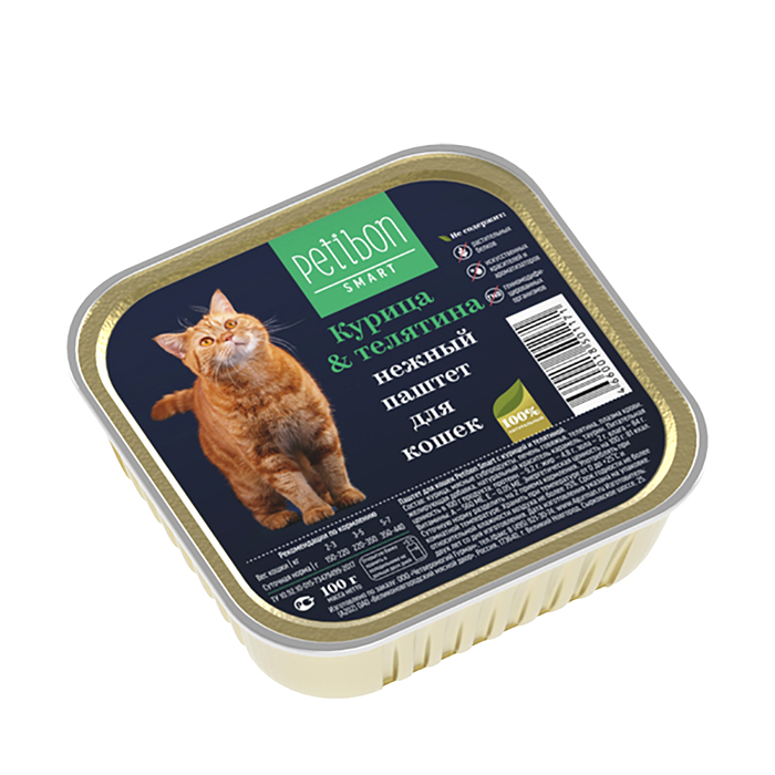 Петибон Смарт влажный корм для кошек, паштет с курицей и телятиной, 100г, PETIBON SMART