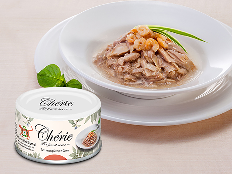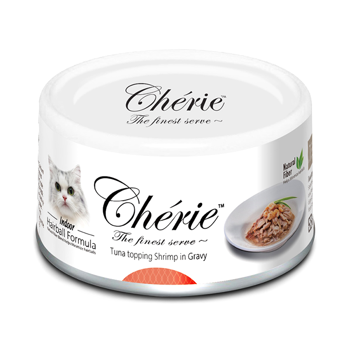Петтрик ШЕРИ влажный корм для кошек, профилактика образования комочков шерсти в желудке, тунец с креветками в соусе, 80г, PETTRIC Cherie Hairball Formula