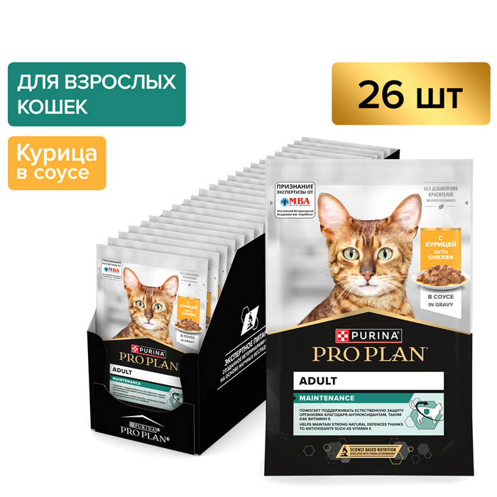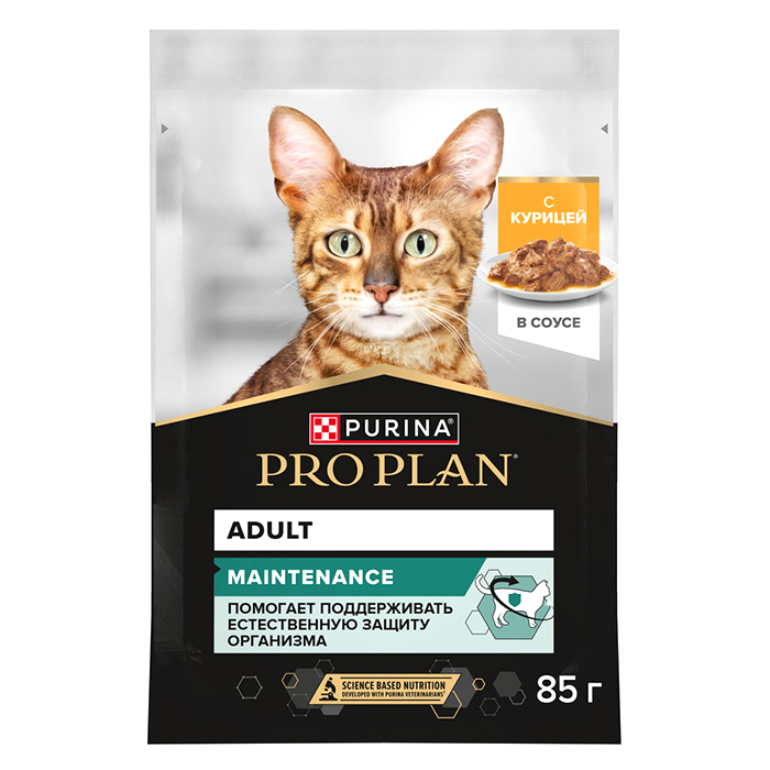 Влажный корм PRO PLAN® MAINTENANCE (Поддержание естественной защиты организма) для взрослых кошек, кусочки с курицей в соусе, 85 г.