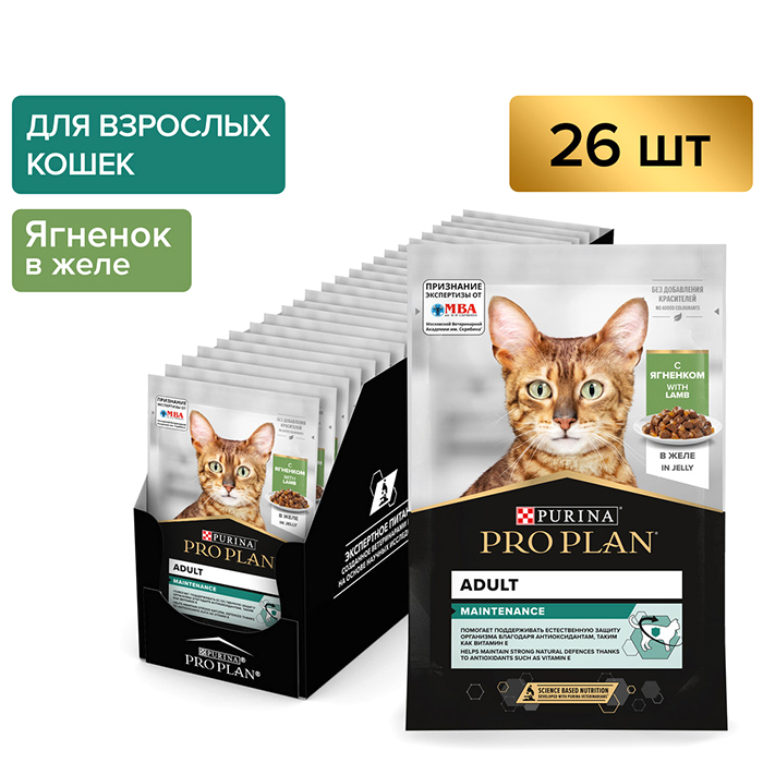 Про План ЭДАЛТ влажный корм для взрослых кошек, с ягненком в желе, 85г, PRO PLAN Adult Maintenance