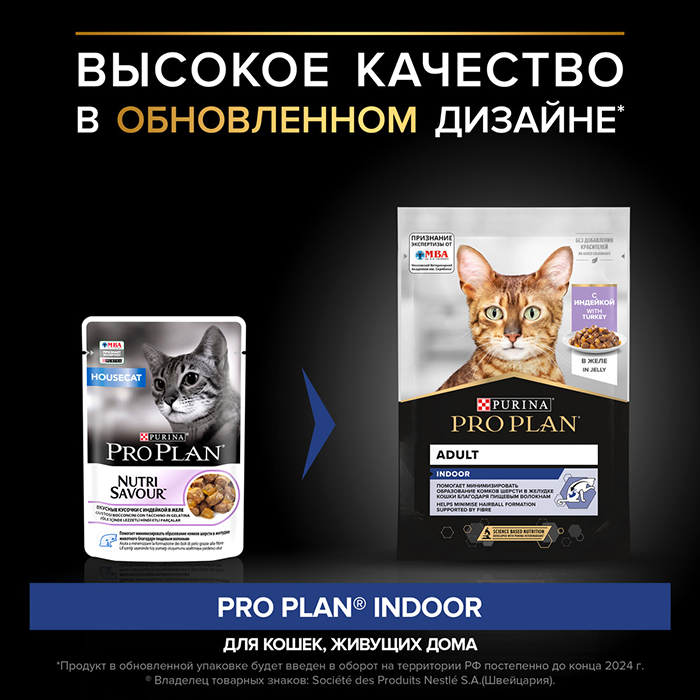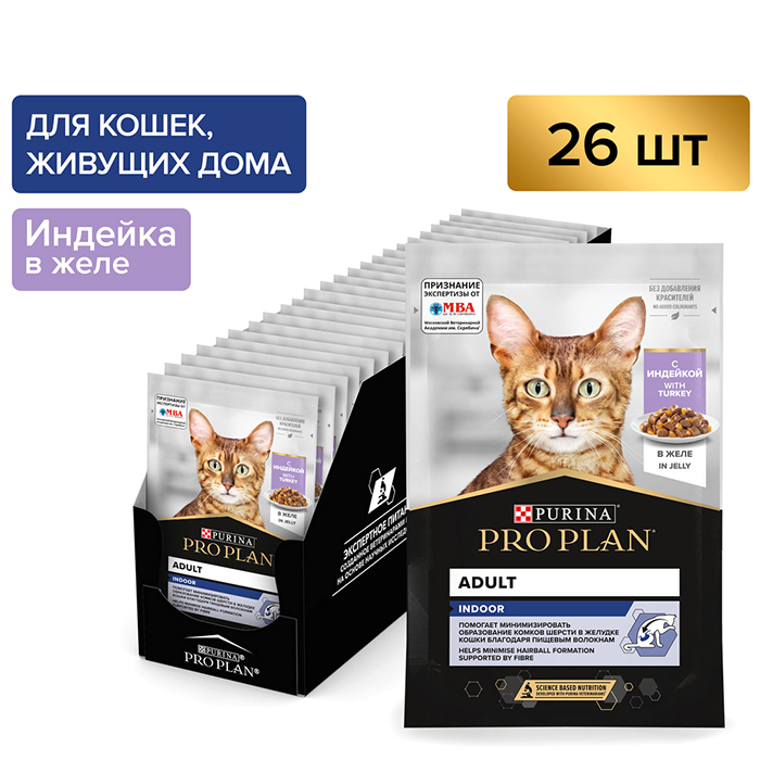 Про План ИНДОР влажный корм для кошек, живущих дома, с индейкой в желе, 85г, PRO PLAN Adult Indoor