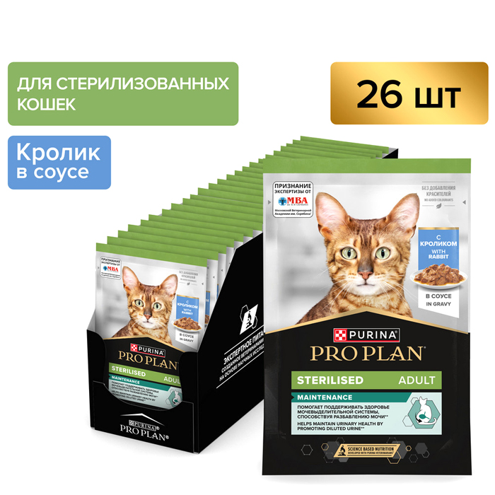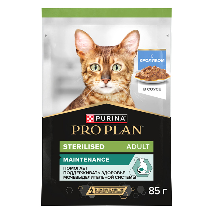 Влажный корм PRO PLAN® Sterilised MAINTENANCE (Поддержание естественной защиты организма) для взрослых стерилизованных кошек и кастрированных котов, с кроликом в соусе, 85 г.