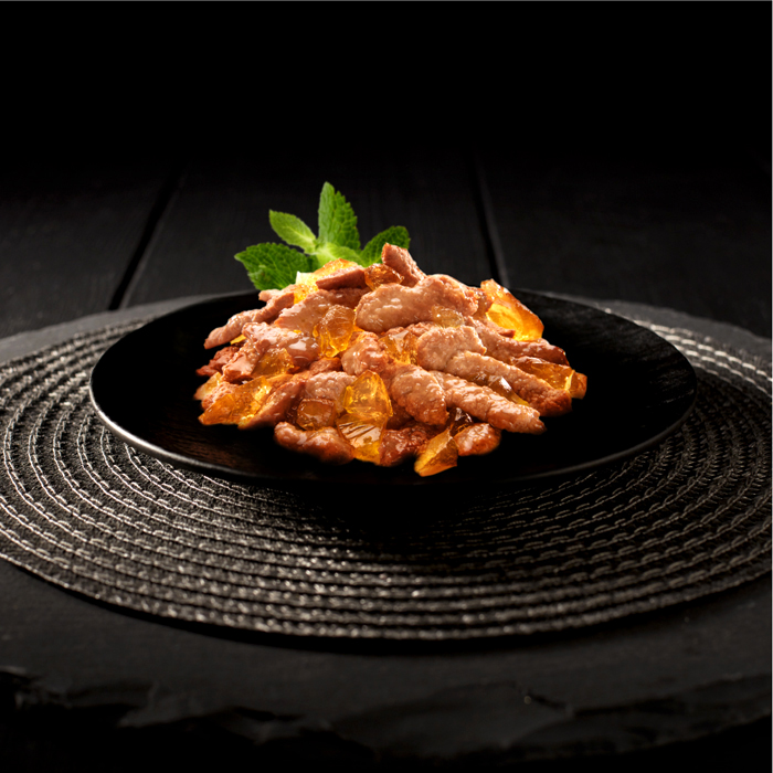 Состав: мясо и субпродукты, рыба и рыбные субпродукты (форель), злаки и продукты их переработки, аминокислоты (в том числе таурин), загустители, минеральные вещества, сахара, витамины, натуральный карамельный краситель. Содержание питательных веществ (100 г): белки – 8,0 г; жиры – 3,2 г; зола – 1,9 г; клетчатка – 0,3 г; витамин А – не менее 100 МЕ; витамин Е – не менее 1,0 мг; влага – 83 г. Энергетическая ценность (100 г): 73 ккал / 305 кДж.