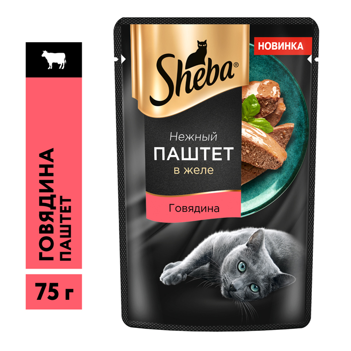 Влажный корм для кошек SHEBA® Нежный Паштет в желе, с говядиной, 75г. Паштет от Sheba® - это новая линейка блюд, в которой мы воплотили всё, что так любит ваша кошка: нежный мясной паштет и тонкий слой ароматного желе. Теперь даже самые притязательные кошки смогут насладиться тем, что точно придется им по вкусу: нежным мясным и рыбным паштетом с тонким слоем желе. Чтобы ваша кошка могла полностью насладиться нежной текстурой блюда, разделите паштет на кусочки или разомните его перед подачей. Рекомендуемое количество корма SHEBA® (вес животного, кг – упаковок корма в сутки, шт): 3 кг – 3; 4 кг – 4; 5 кг – 5. Вашего питомца следует кормить кормом комнатной температуры.