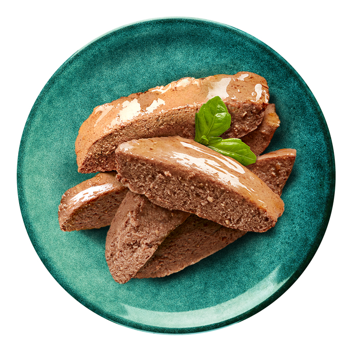 Состав: мясо и субпродукты (в том числе говядина), аминокислоты (в том числе таурин), загустители, минеральные вещества, свекольный жом, сахара, витамины. Содержание питательных веществ (100 г): белки - 9,0 г; жиры - 3,0 г; зола - 1,5 г; клетчатка - 0,1 г; влага - 84 г.; витамин А - не менее 100 МЕ; витамин Е - не менее 1,0 мг. Энергетическая ценность (100 г): 70 ккал / 293 кДж.