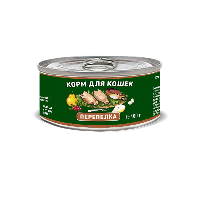 Ингредиенты: Перепелка, желирующая добавка, таурин, вода. Состав:Сырой протеин не менее 9,5 г, сырой жир не более 10,0 г, сырая зола не более 2,0 г, таурин 0,3 г, массовая доля поваренной соли 0,4-0,6 г, влага не более 82%, общий фосфор не более 0,4 г, кальций не более 0,3 г.