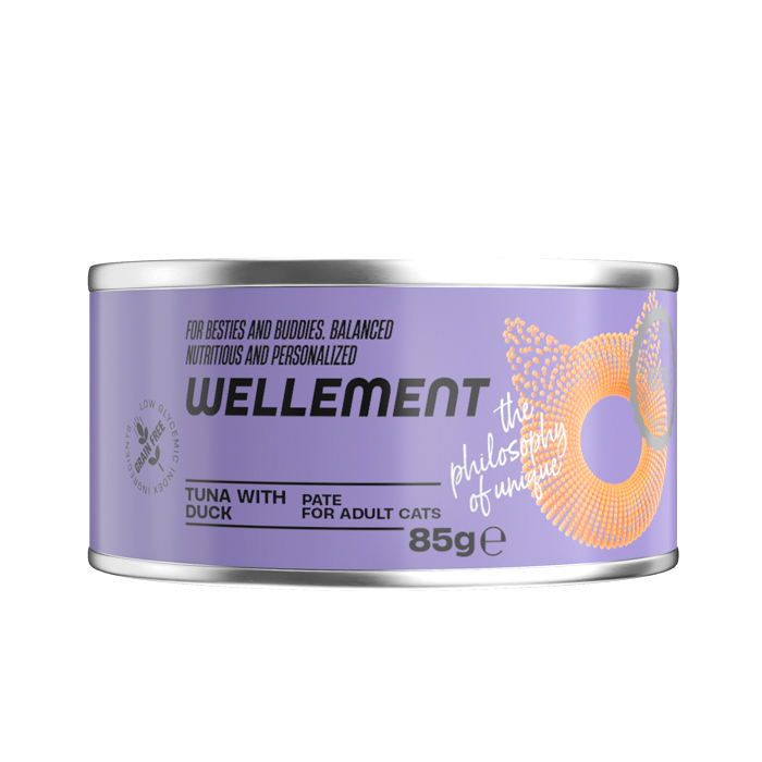 Веллемент влажный корм для кошек, паштет с тунцом и уткой, 85г, WELLEMENT