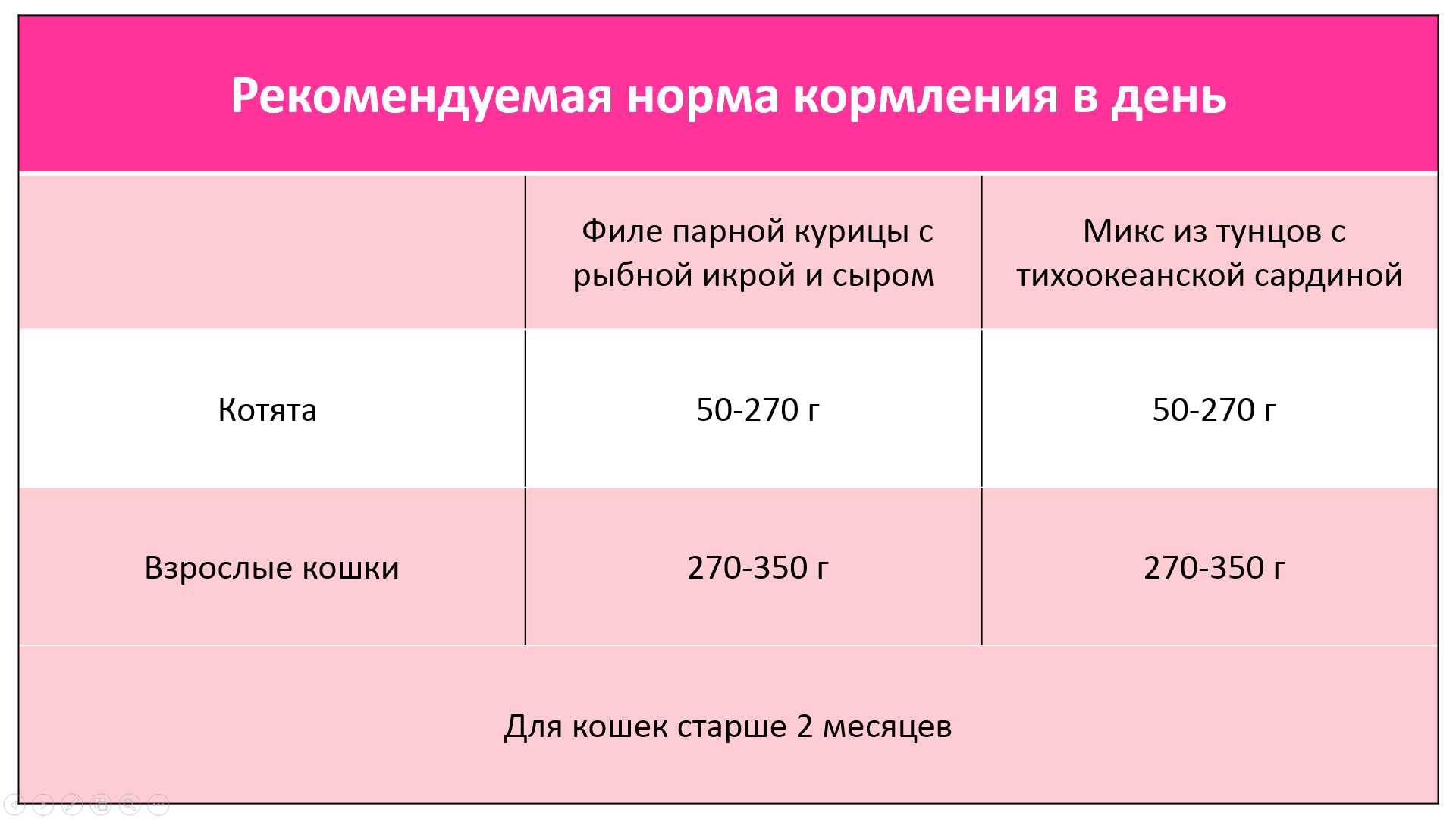 Нутриентный состав №2: Белки ≥ 7,5% Жиры ≥ 1,5% Клетчатка ≤ 1,5% Зольность ≤ 4,5% Влага ≤ 88,0% Таурин ≥ 0,04% Кальций ≥ 0,13% Фосфор ≥ 0,1% Водорастворимый хлорид ≥ 0,06%