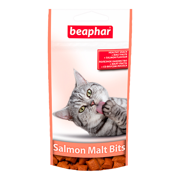 Биафар МАЛЬ БИТС лакомство для кошек - подушечки для выведения шерсти с лососем, 35г, BEAPHAR Malt Bits