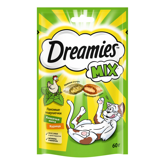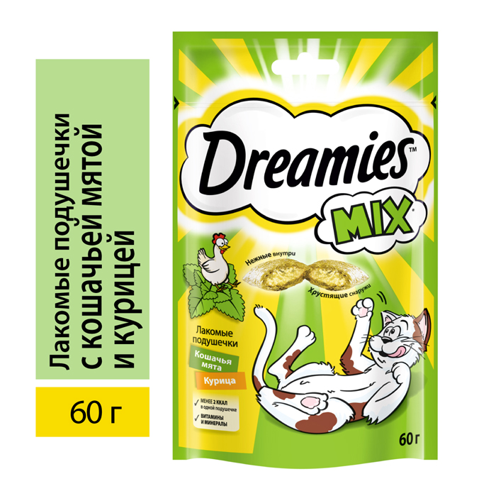 Дримис МИКС лакомство для кошек, подушечки с кошачьей мятой и курицей, 60г, DREAMIES