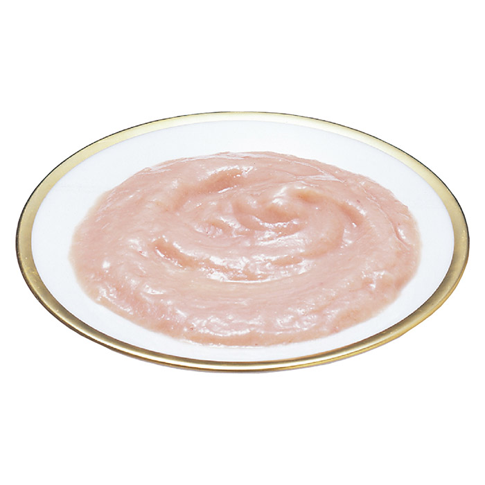 Состав: куриное филе, кальмар, крахмал, экстракт кальмара, загусти тель, гидролизат протеина, дрожжевой экстракт, олигосахариды, вита мин E, экстракт зеленого чая, красный ферментированный рис. Анализ: белки – 8,3%, жиры – 1%, клетчатка – 0,3%, зола – 1,3%, влажность –88,5%.