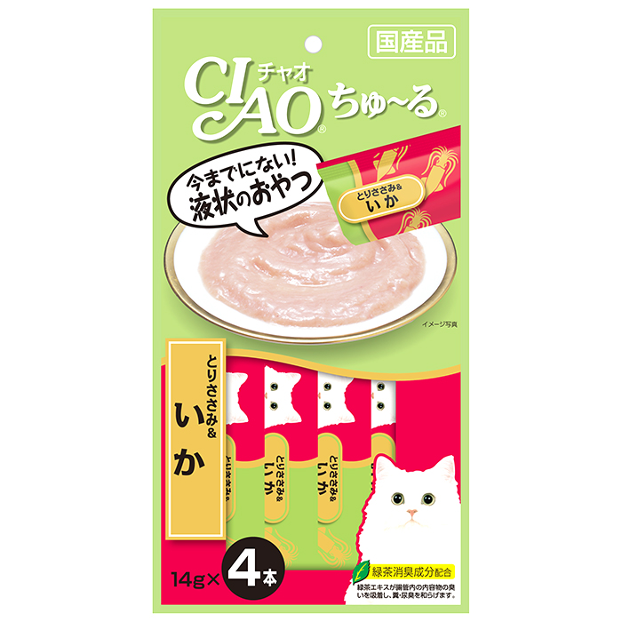 Суперпремиальное лакомство-пюре на основе нежного филе фермерской курицы с добавлением кальмара Ciao Churu от японского производителя Inaba изготовлено исключительно из натуральных ингредиентов и отличается высоким процентом влажности, благодаря чему поддерживается водный баланс организма кошки. Корма и лакомства Inaba отличаются высоким качеством и неповторимым вкусом, ведь они изготавливаются только из отборных традиционных японских ингредиентов! Удобная упаковка позволяет кормить питомца прямо с рук, используя лакомство для поощрения или дрессировки или использовать его как топпинг к сухому или влажному корму. Во все продукты добавлен экстракт зеленого чая, который, благодаря содержанию катехина, обладает нейтрализующим действием на запах содержимого кишечника. Корм обогащён витамином Е - натуральным антиоксидантом, поддерживающим иммунную систему, не содержит искусственных добавок, красителей и консервантов.